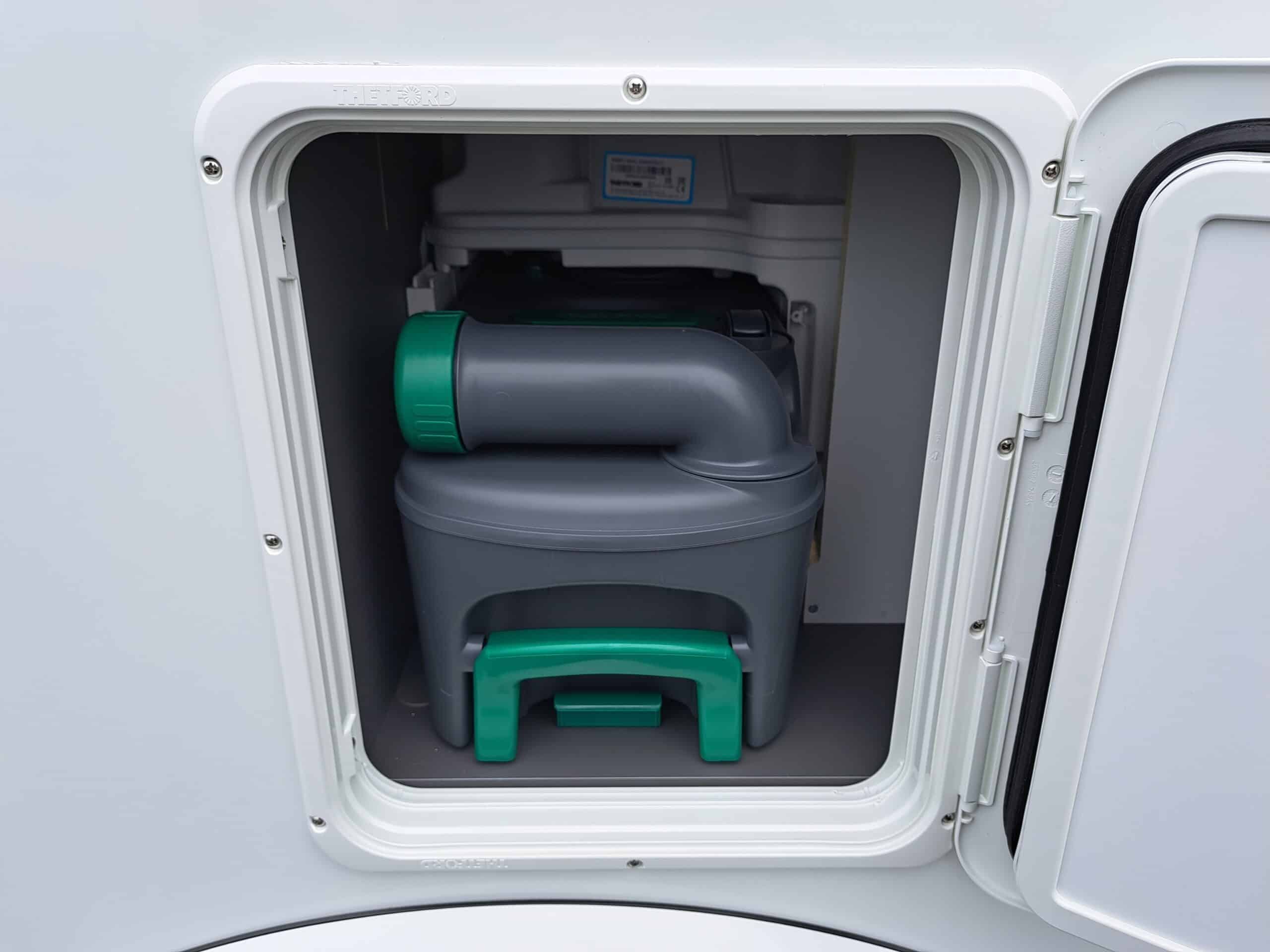 • Komfort-Eingangstür mit Fenster, Verdunkelungsrollo, integriertem Mülleimer und 2-fach Verriegelung