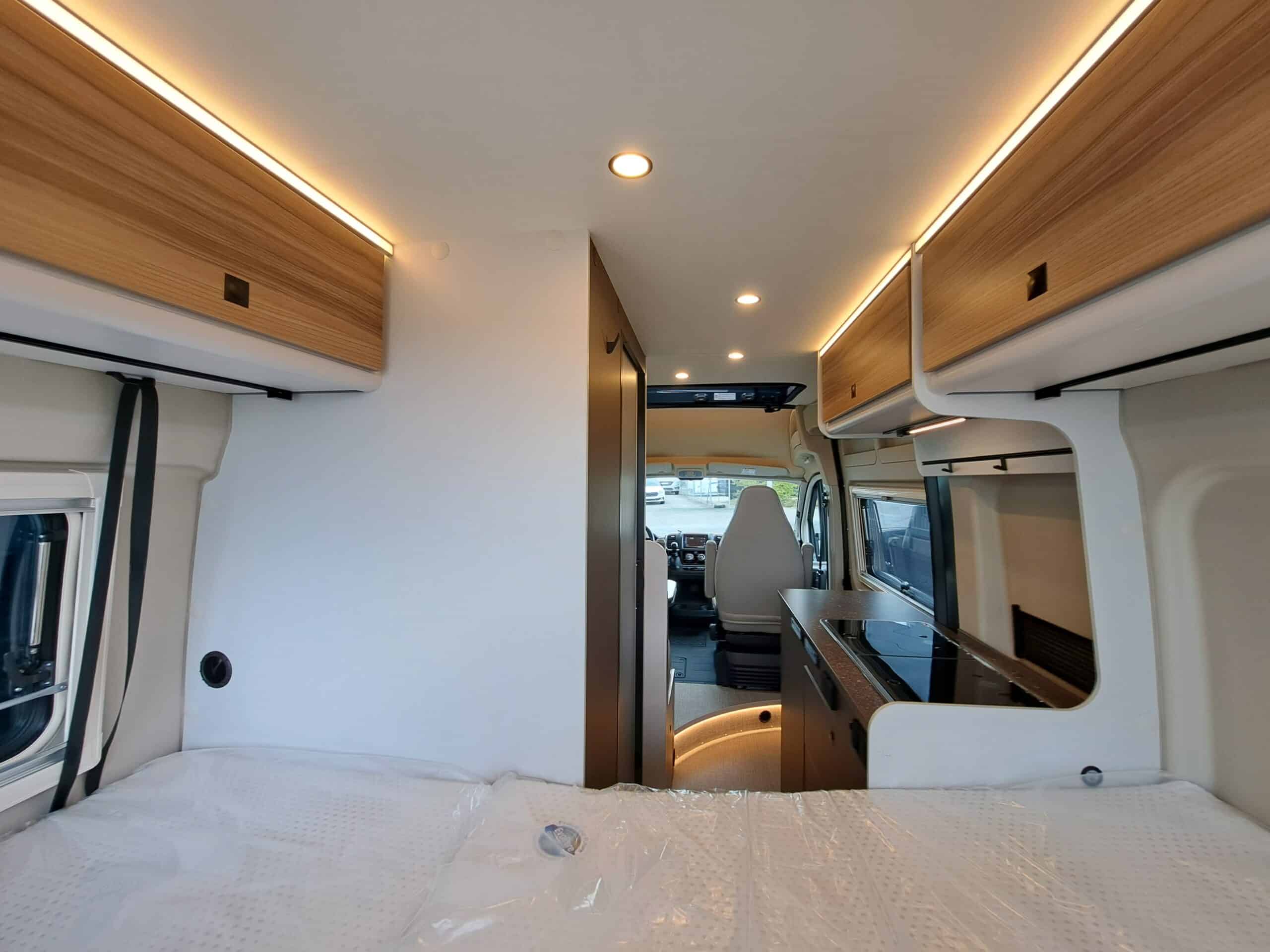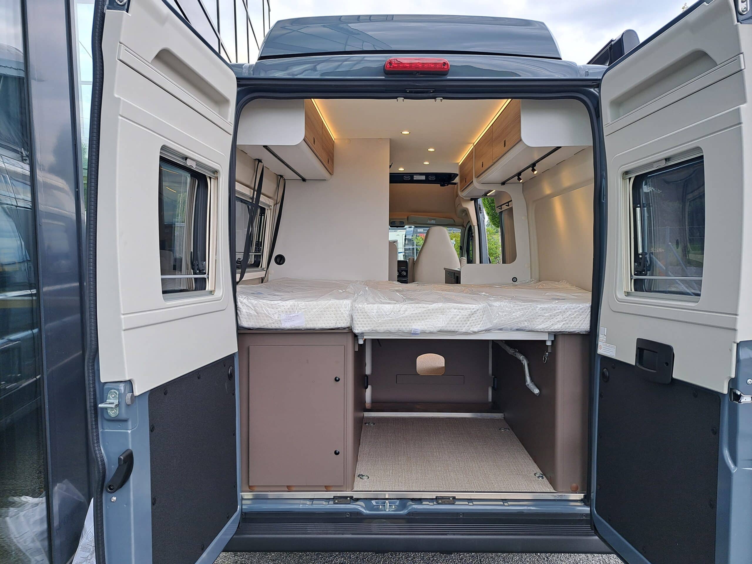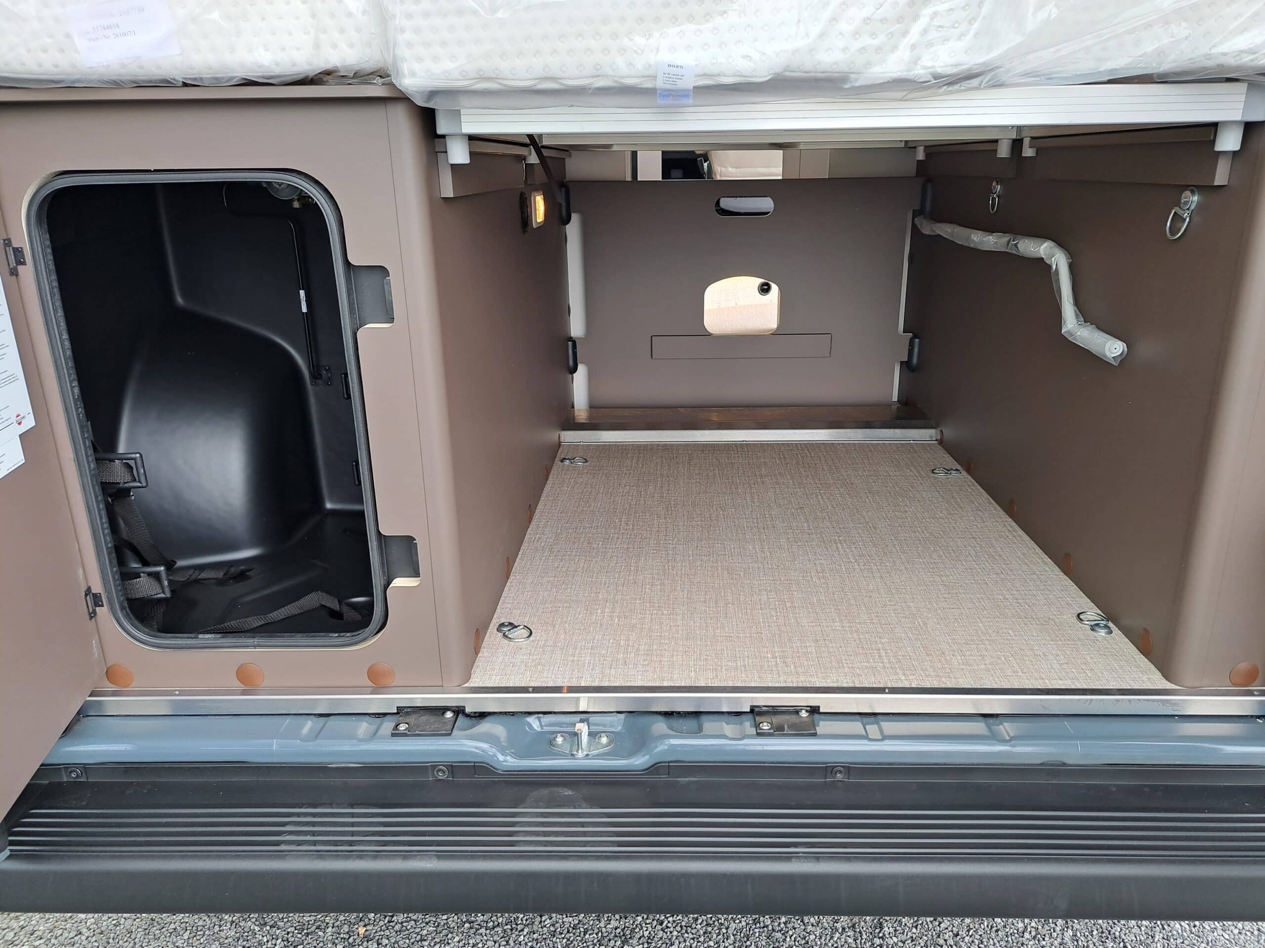 • Aufstiegshilfe für Heckdoppelbetten in Schottwand integriert
