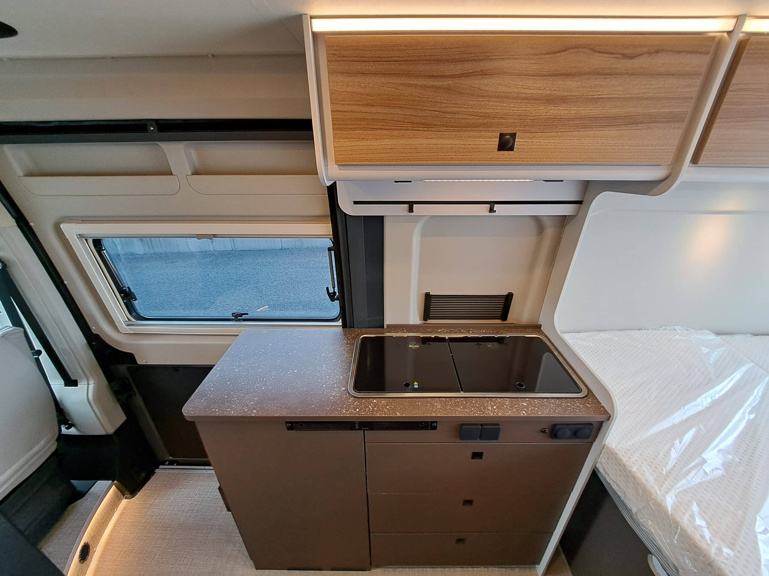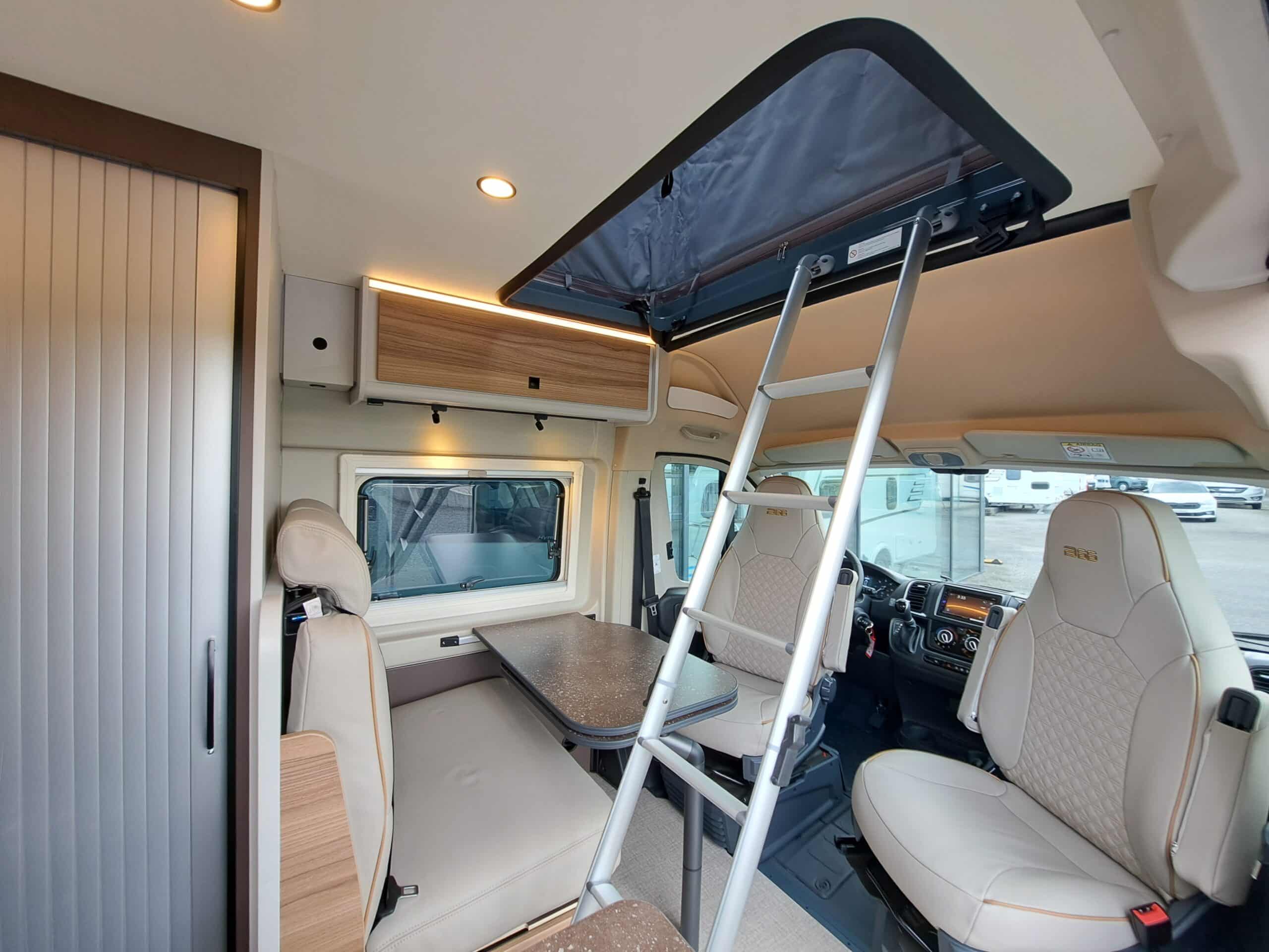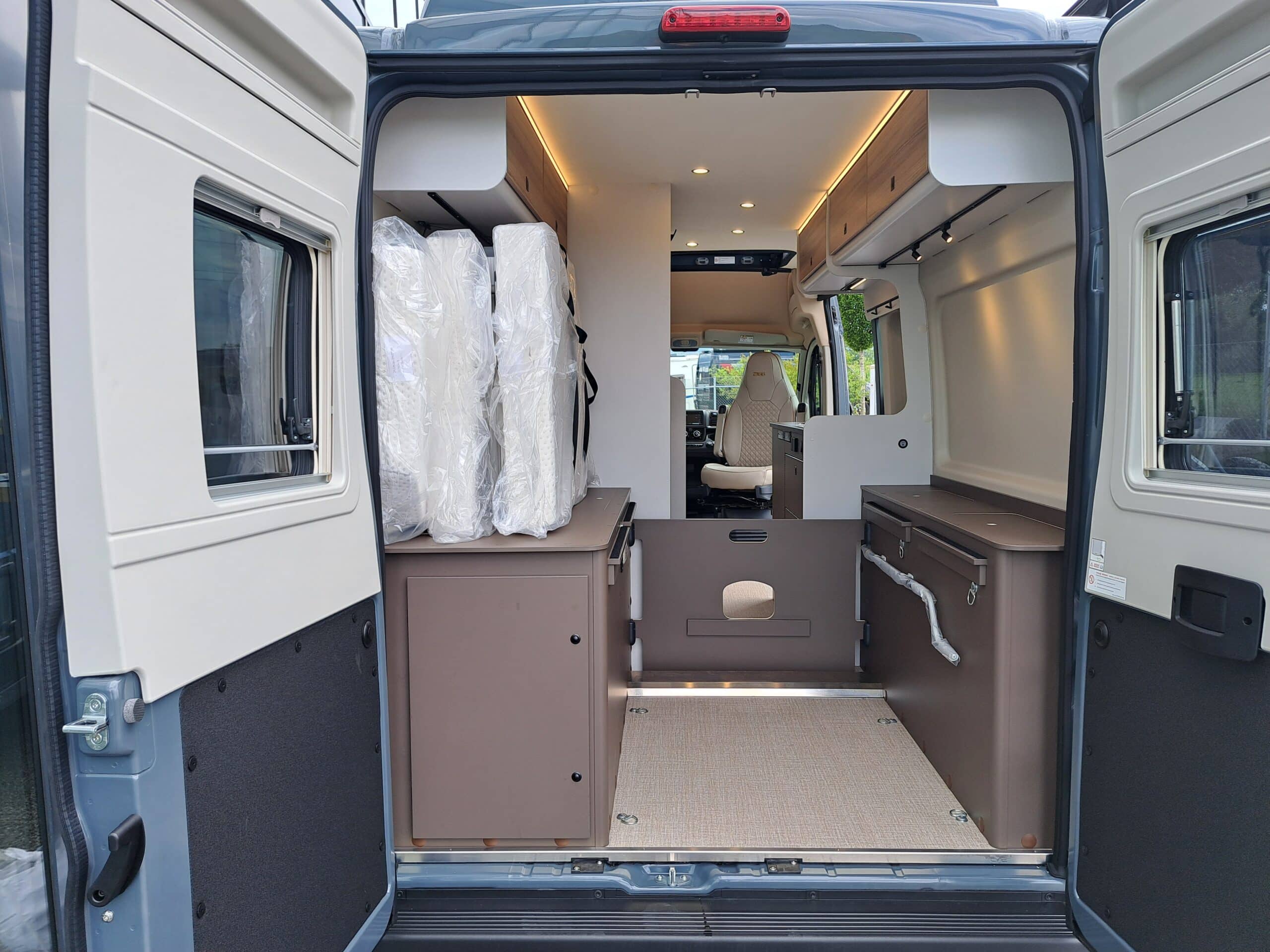 • Aufstiegshilfe für Heckdoppelbetten in Schottwand integriert