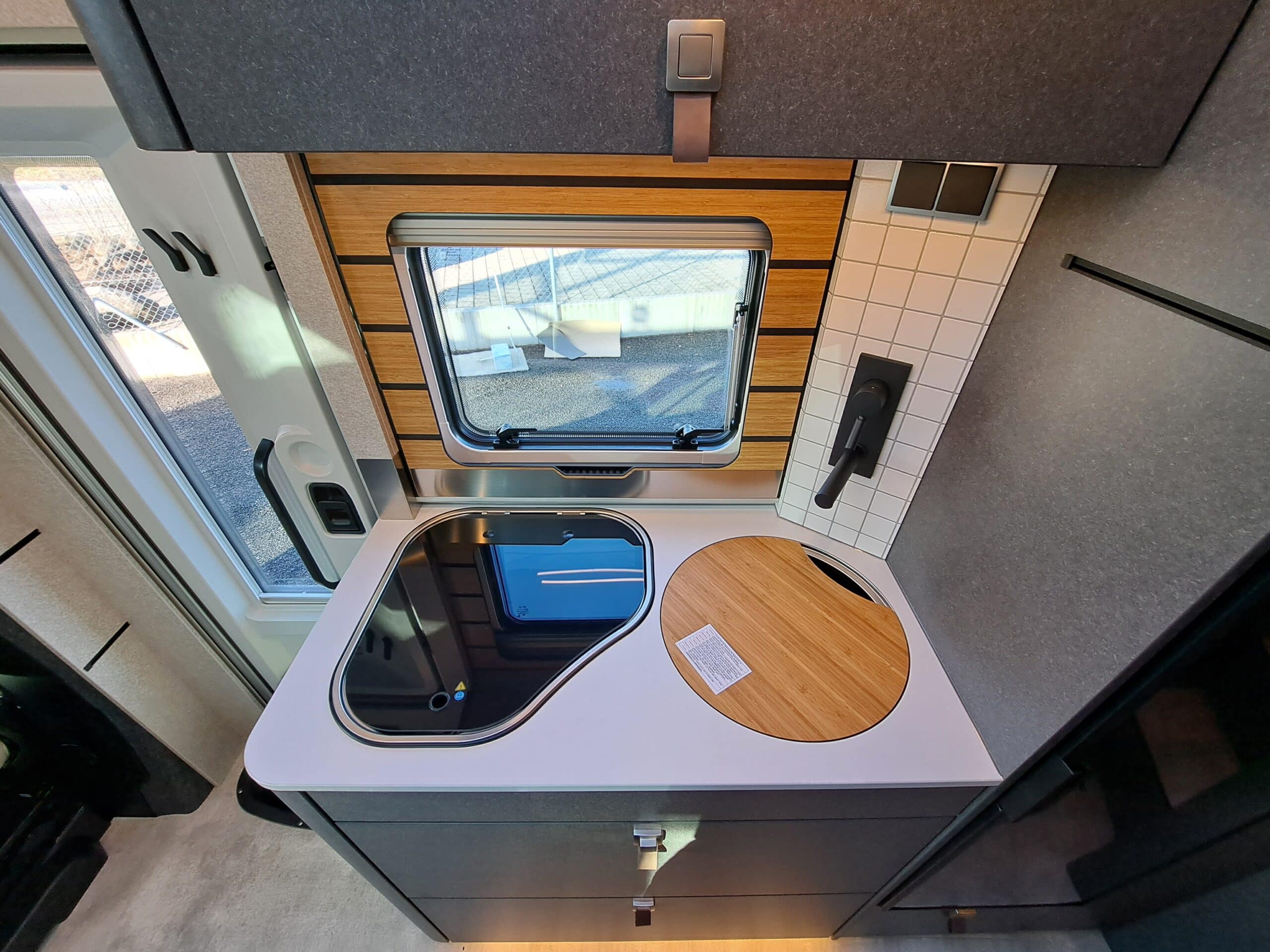Komfort-Eingangstür mit Fenster, Verdunkelungsrollo, integriertem Mülleimer und 2-fach Verriegelung