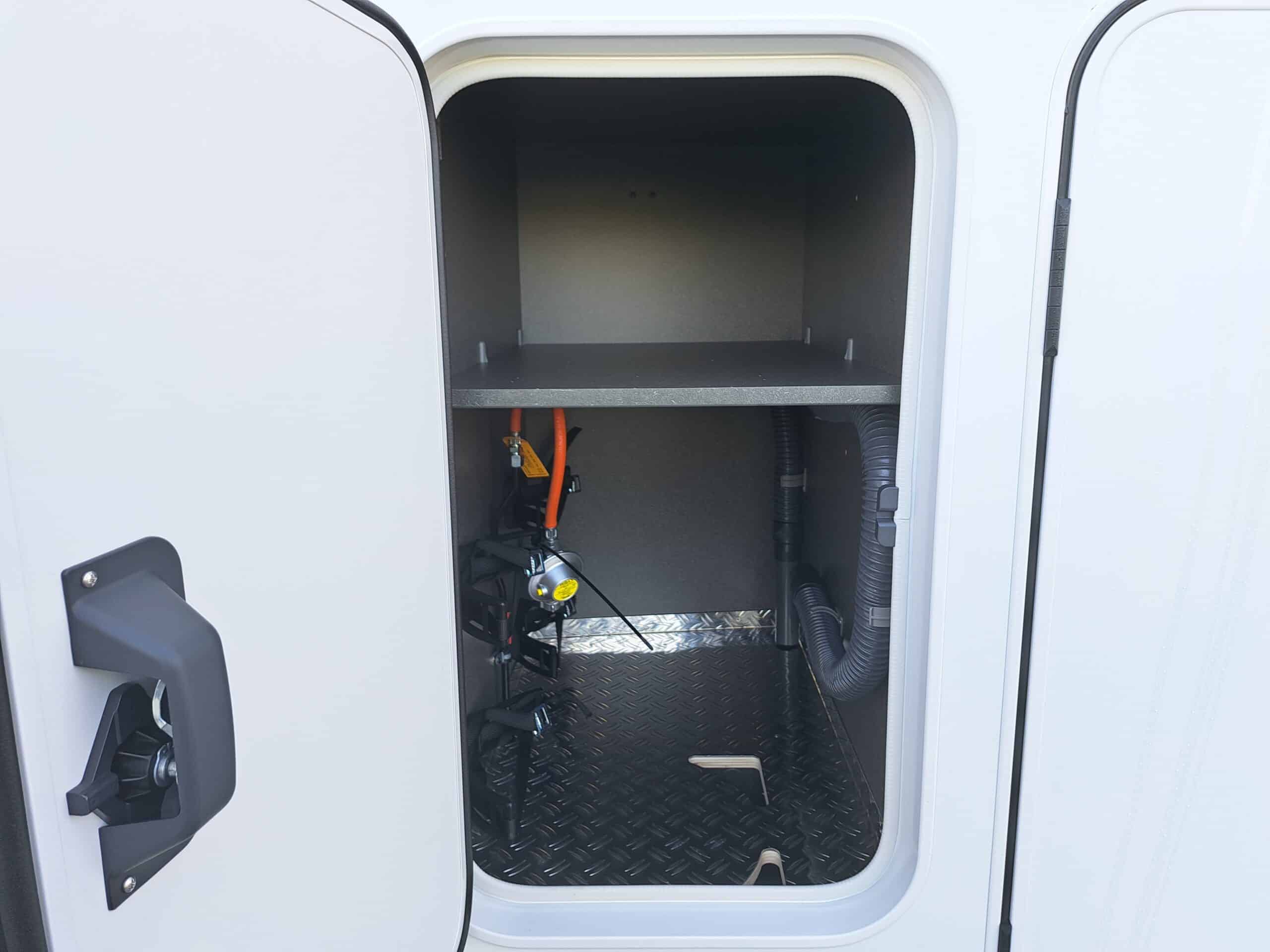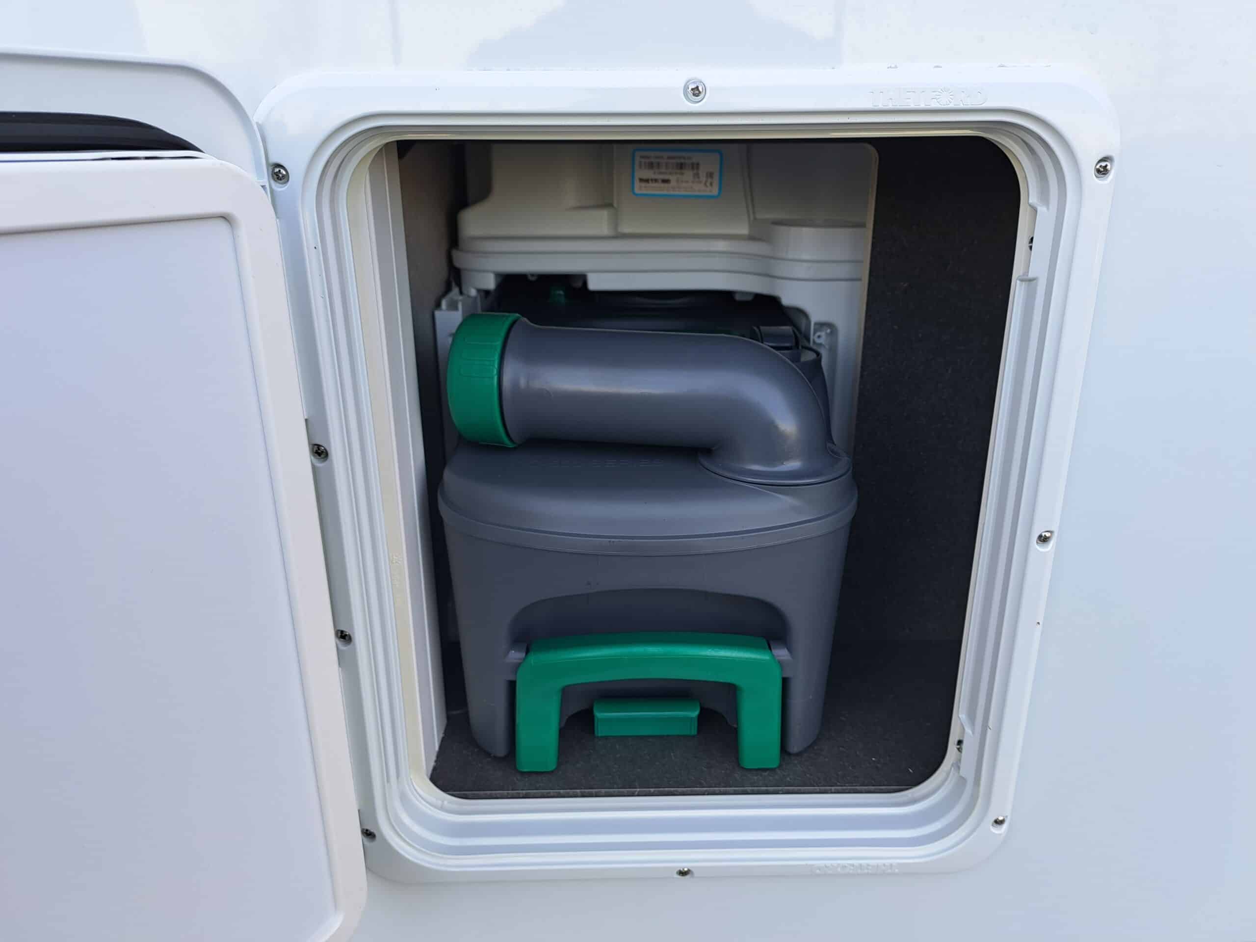 • Komfort-Eingangstür mit Fenster, Verdunkelungsrollo, integriertem Mülleimer und 2-fach Verriegelung